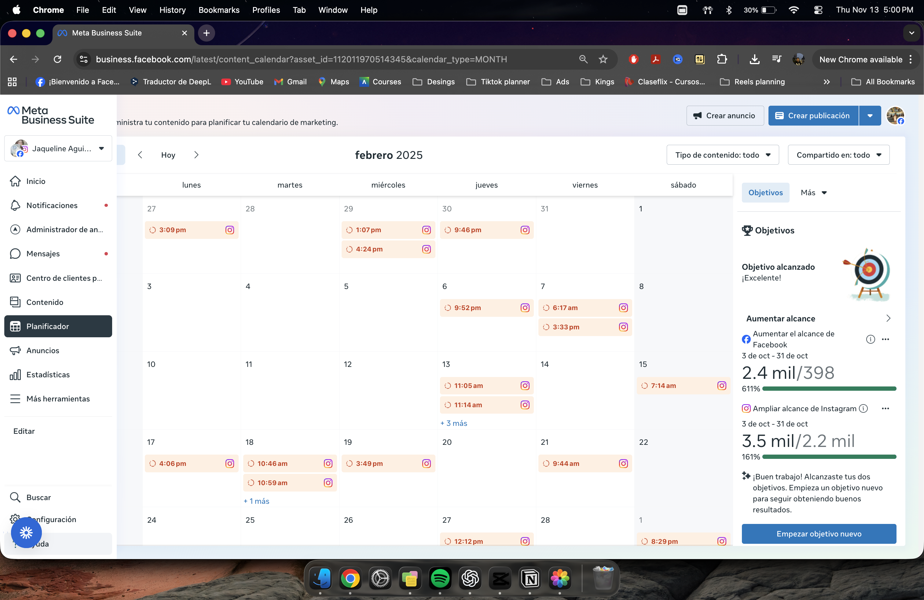 Meta Suite automated her posting schedule across Instagram and Facebook.